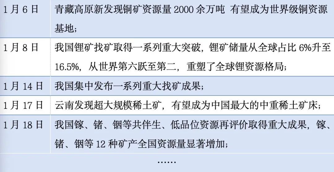 早在特朗普开启第二个总统任期挥起关税大棒前,中国矿产资源家底就迎来了批量“上新”,而这些都可以追溯到我国从2021年就开始的新一轮找矿突破战略行动。可以说过去数年间,中国一直在为应对外部不确定性、提高自身韧性做充足准备。笔者从自然资源部获悉,行动实施以来,我国已新发现 10个亿吨级油田,19个千亿方级气田,探获10个大型以上铀矿床。铜、铝、铁等大宗矿产,锂、锆铪、氦气、稀土等战略性新兴产业矿产取得重大突破;钨、钼、锑、萤石、石墨等优势矿种资源量实现较大幅度增长。